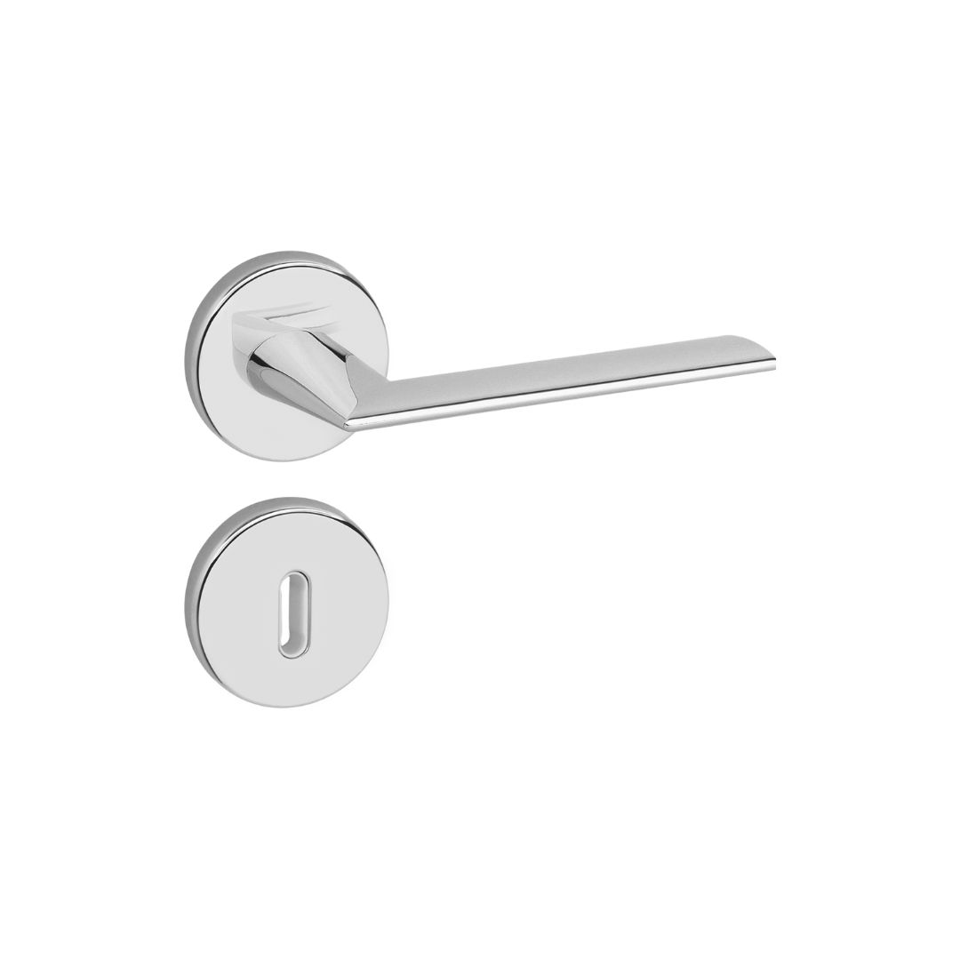 Esta maçaneta apresenta um desenho elegante e discreto. Com sua pega fina e achatada, proporciona ao usuário conforto tátil, porém com um visual discreto e minimalista. Perfeito para ambientes onde se busca leveza e discrição, seja em residências ou locais de trabalho.